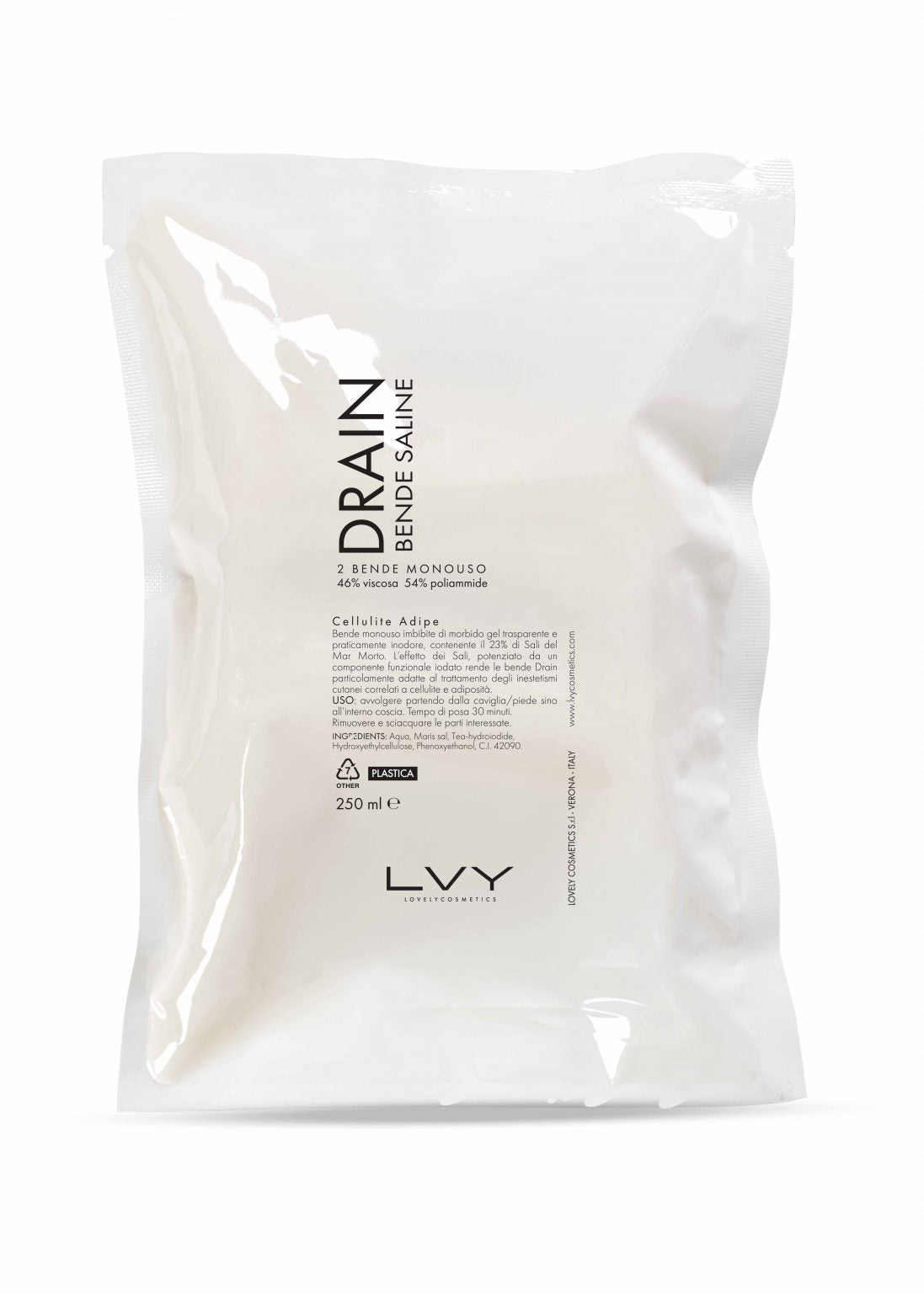 Bende monouso imbibite di morbido gel trasparente e praticamente inodore, contenente il 23% di Sali del Mar Morto. L’effetto dei Sali, potenziato da un componente funzionale iodato rende le bende Drain particolarmente adatte al trattamento degli inestetismi cutanei correlati a cellulite e adiposità.
