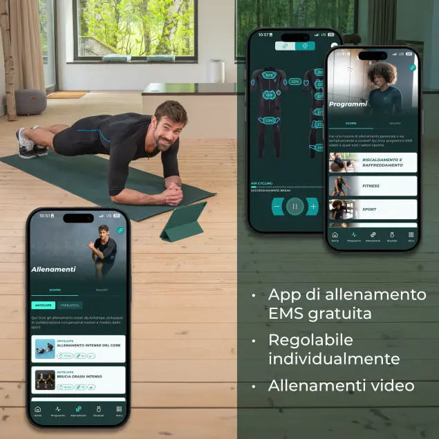 • Allenamento efficace e flessibile: Oltre 40 programmi EMS adatti a te e ai tuoi obiettivi
